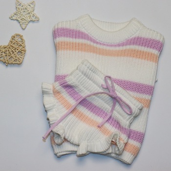 Suéter de cuello redondo para bebé de otoño e invierno, suéter de rayas de colores para bebé, Top sencillo de algodón puro + Pantalones cortos, conjunto de 2 piezas