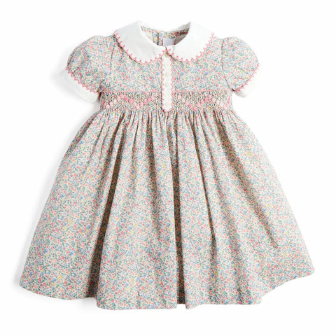 Boutique Kids Dress Hecho a mano Smocking Pink Floral Cotton Liner Sister Matching Smock Ropa Smocked Vestidos para niñas