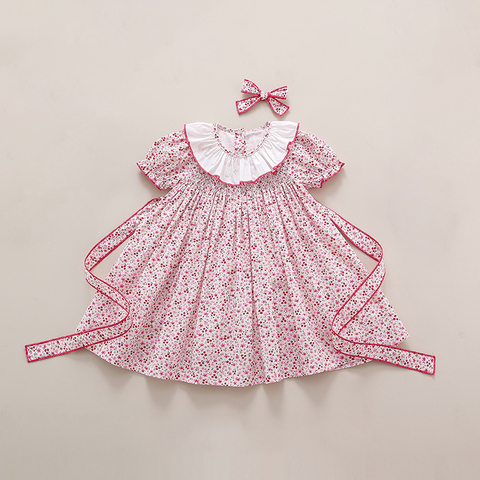 Cửa hàng trẻ em ăn mặc handmade smocking màu hồng hoa cotton lót em gái phù hợp với smock quần áo smocked Dresses cho cô gái