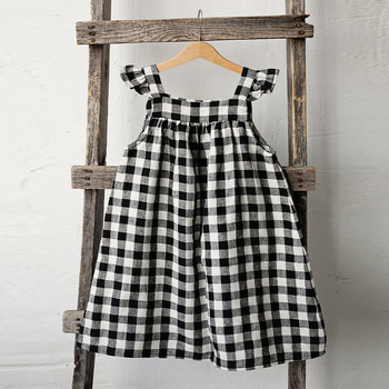 Mùa Hè Mới Vải Lanh Cotton Thoáng Khí Không Tay Vest Ăn Mặc Bé Cô Gái Thời Trang Kẻ Sọc Cổ Vuông Ăn Mặc Quan Hệ Nhân Quả Của Trẻ Em Quần Áo