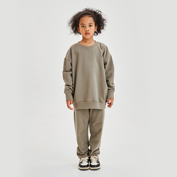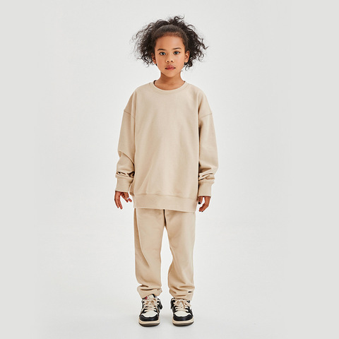 340G Pháp Terry Áo Thun Quá Khổ Trẻ Em Của Crewneck Áo Quần Đặt Chạy Bộ Phù Hợp Với Trẻ Em Mùa Đông Quần Áo Bộ Tracksuit