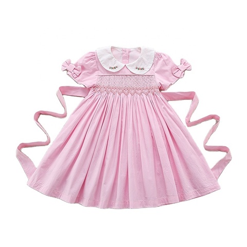 Cửa hàng trẻ em ăn mặc handmade smocking màu hồng cotton lót em gái phù hợp với smock quần áo smocked Dresses cho cô gái